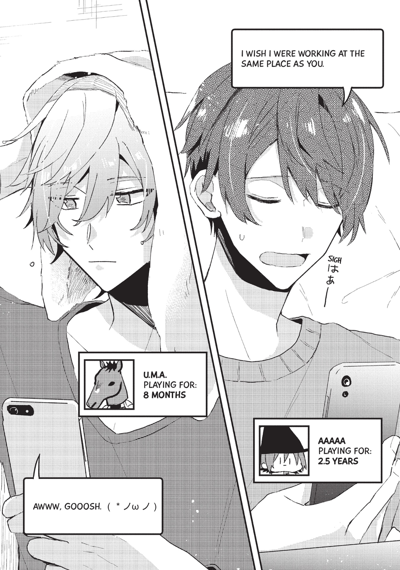 I highly recommend Turns Out My Online Friend is My Real-Life Boss! if you need something light and sweet to brighten your day! I pre-ordered volume 2 already and can't wait for it to arrive. ♡